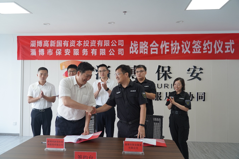 為深入貫徹落實“三提三爭”要求,7月20日上午,淄博市保安服務(wù)有限公司與淄博高新國有資本投資有限公司戰(zhàn)略合作協(xié)議簽約儀式在淄博市保安服務(wù)有限公司會議室舉行。淄博高新國有資本投資有限公司黨委書記、董事長劉博,淄博市保安服務(wù)有限公司黨委書記、董事長付志欣出席簽約儀式。